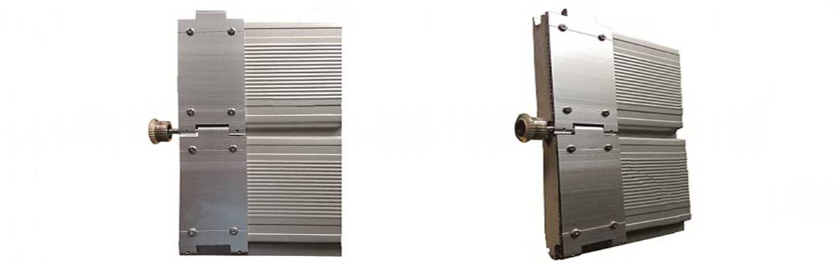 華建工業快速硬質門門體采用特制的鋁合金鉸鏈連接(如圖),特制的鋁合金鉸鏈固定在門體上使兩塊門體之間有一定的間隙不相互摩擦,滑輪輪桿固定在鉸鏈中心滑輪在軌道中滾動運行,整個鉸鏈組合可承受300萬次折合以上;門體塊與塊拼接之間采用優質的三元乙丙橡膠材質密封;門體與門體的接口采用斷橋設計,保溫、隔熱、降噪功能顯著;門體可采用雙面鋁合金中間填充高密度聚氨酯材料,也可采用加厚中空鋁合金型材及透明聚碳酸酯板組合;門體也可開透視窗。