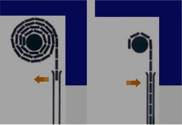 采用常規支撐端板的工業歐卷門(圖A)轉軸直徑會隨著門體開的高矮狀態而逐步變大,會隨著門體關的高矮狀態而逐步變小。轉軸的直徑是變化的而轉軸的位置是固定不變的 ,工業歐卷門的門體與軌道必定形成如圖中(圖A)顯示一樣的斜面和夾角,造成軌道與門體出現非常大的摩擦 ,故門易壞且噪音大。華建的主動滾動支撐系統端板(圖B)解決 了以上缺陷,實現了工業歐卷門的轉軸在門體開和關的過程中自由的前后移動,不管轉軸因為門體開或關的直徑變大還是變小門體永遠是垂直于軌道槽口,不會與軌道產生大的摩擦力,所以安裝華建的主動滾動支撐系統端板的工業歐卷門使用壽命會更長、運行噪音更小、故障率更低、抗風性能更好。