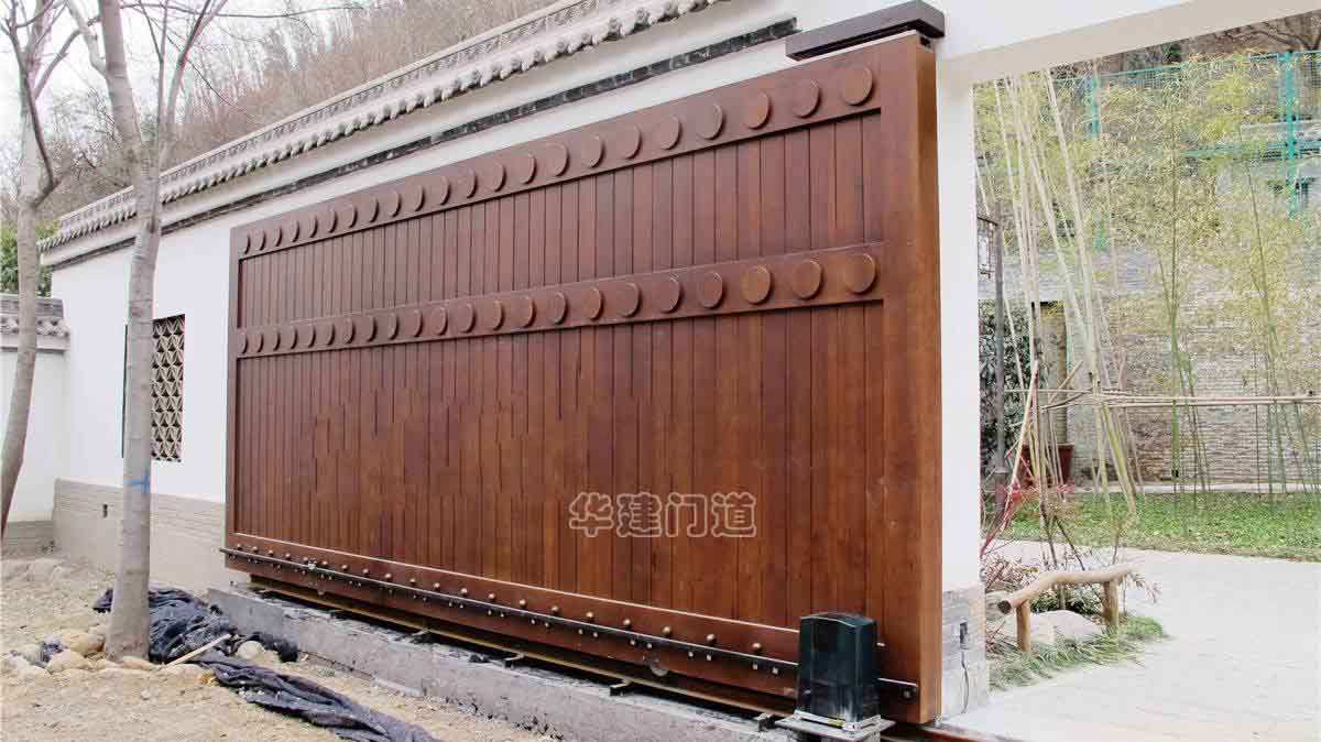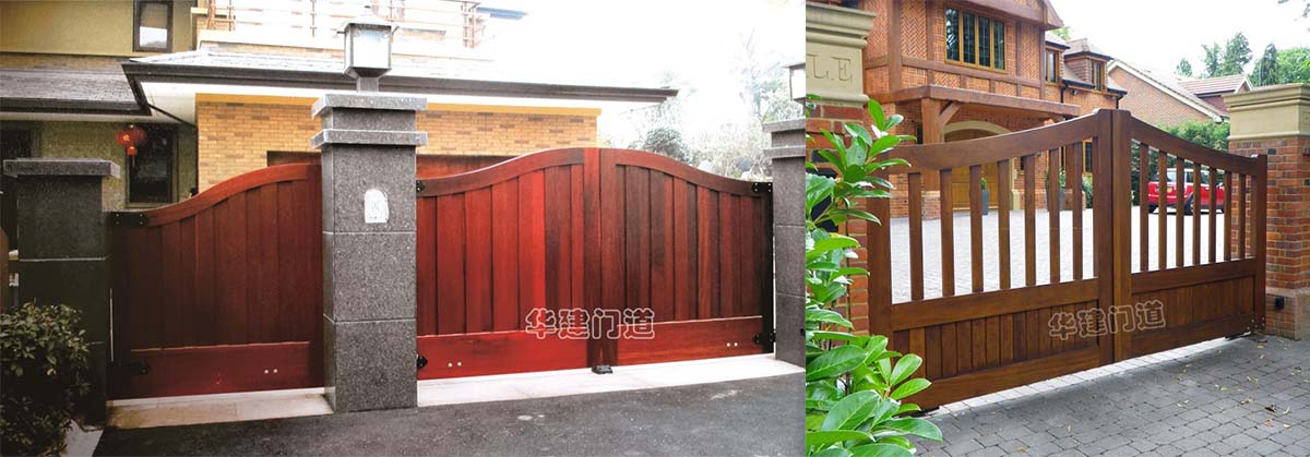 華建電動木質(zhì)庭院門門體采用各類進口木材精制而成(常用木材有美國花旗松、榿木、紅雪松、綠柄桑、美國胡桃木、緬甸柚木等)可制作任意顏色及任意外觀樣式。門體每個細節(jié)均精工打造純手工精制,整體高檔、精致、端莊、華麗。木材通過烘干、殺菌型處理。在防潮車間里進行加工制作,以最快的速度將成品進行油漆包裹,使實木庭院門的木材含水率始終與使用地保持接近。油漆采用德國凱基品牌滲透性戶外木材專用環(huán)保漆,三底兩面上漆工藝,經(jīng)過特殊的防水處理,保證實木庭院門面板不受環(huán)境氣候變化影響,達到防水、防腐、防蟲、抗紫外線、透氣、木材不易開裂變形。五金配件、開門機、安全保護裝置等均特制并精心匹配。被廣泛用于對品質(zhì)要求非常高各類建筑車道出入口,具有外形豪華、結(jié)構(gòu)堅固、安裝方便、耐用等特點。華建實木庭院門按照開啟方式可分為平開式和平移式。庭院門一般僅有門洞兩側(cè)門柱,而無洞口過梁,為開放式門洞,兩門柱件間間距尺寸變化很大。應(yīng)根據(jù)不同情況及要求考慮庭院門的形式對于門柱間距較大者應(yīng)多考慮平移式庭院門,門柱間距較小者多考慮平開式庭院門。實木平移庭院門由門體、導(dǎo)軌、導(dǎo)輪、驅(qū)動電機、保護裝置等;實木平庭院門由門體、門軸、導(dǎo)輪、驅(qū)動電機、保護裝置等組成。