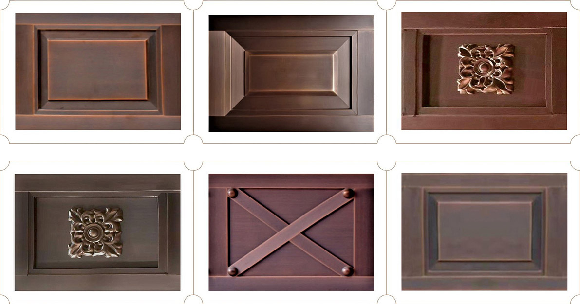 門體款式:門體可設計為方格、豎槽、平板等。門體表面可加各種銅藝裝飾花件、造型件、仿古做舊,可任意設計、制作各類款式造型;