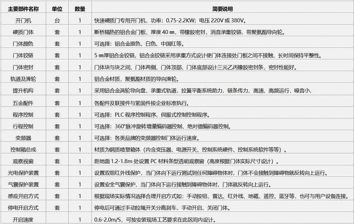 快速硬質(zhì)門部件清單(單樘)及簡(jiǎn)述