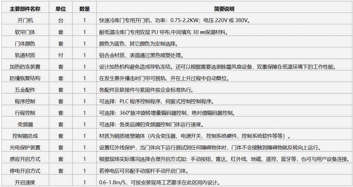 快速冷庫門部件清單(單樘)及簡(jiǎn)述