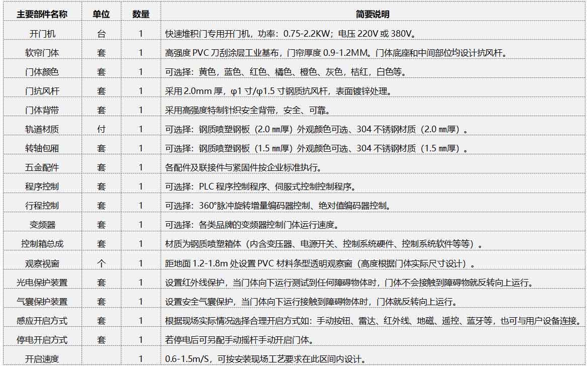 快速軟簾門部件清單(單樘)及簡(jiǎn)述