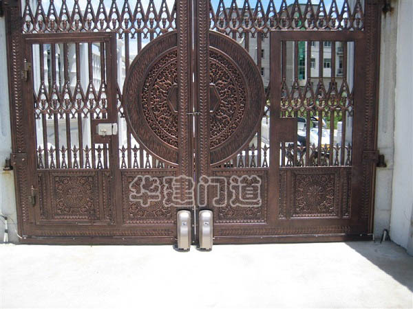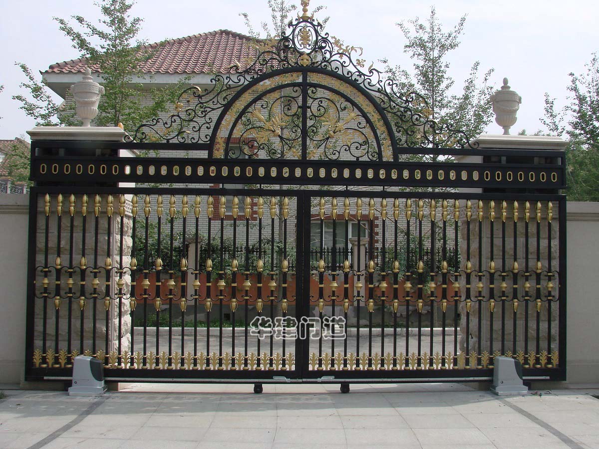 華建電動鋼質庭院門門體可采用各類鐵藝、不銹鋼等精制而成,可制作任意顏色及任意外觀款式。門體的每個細節均精工打造,整體高檔、精致、端莊、華麗。五金配件、開門機、安全保護裝置等均特制并精心匹配。被廣泛用于各類建筑車道出入口,具有外形美觀、結構堅固、安裝方便、耐用等特點。華建鋼質庭院門按照開啟方式可分為平開式和平移式。庭院門一般僅有門洞兩側門柱,而洞口過梁為開放式門洞,兩門柱間間距尺寸變化很大,應根據不同情況及要求考慮庭院門形式。對于門柱間距較大者多考慮平移式庭院門,門柱間距較小者可考慮平開式庭院門。鋼質平移庭院門由門體、導軌、導輪、驅動電機、保護裝置等組成;鋼質平開庭院門由門體、門軸、導輪、動電機、保護裝置等組成。