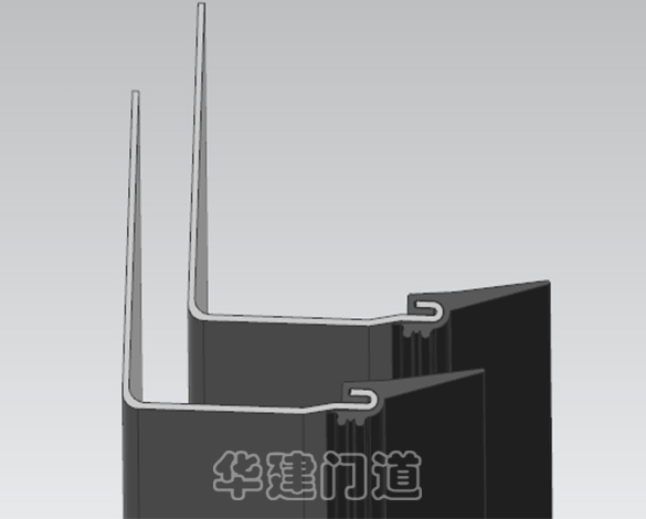 華建美式車庫門配備的軌道護軌及密封件(如圖),軌道護軌采用帶止退鉤造型,可防止車庫門安裝好后密封件被外力從軌道護軌上拉拽脫落。密封件采用三元乙丙橡膠材質,日曬雨淋均不變質老化開裂。   市場中低質車庫門不配備或配低端軌道護軌及密封件,也有部分產品(如圖),軌道護軌為簡單的折角處理,無止退鉤,門安裝好后密封件可用外力從軌道護軌上拉拽掉,密封件為劣質PVC材質,易變質老化開裂。