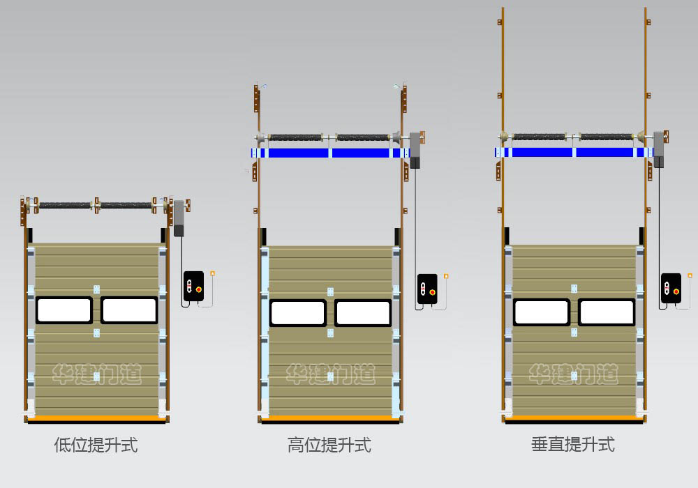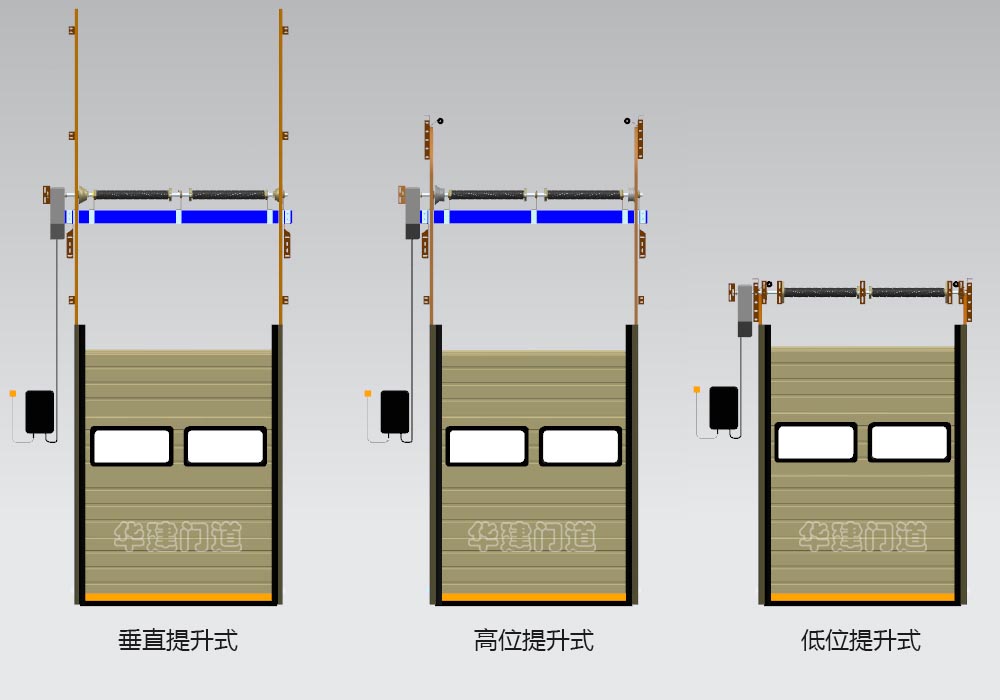 工業滑升門又稱工業提升門,華建系列工業滑升門分為:常規滑升門、透視滑升門、多段滑升門三大類;常規滑升門和透視滑升門的門體材質不同,但主體結構設計、安裝要求和安裝土建條件等基本雷同;多段滑升門與常規滑升門門體材質雷同,但主體結構設計、安裝要求和安裝土建條件要求不同;幾種不同類型的滑升門用于不同的安裝現場及滿足不同的設計要求,常規滑升門一般用于門洞面積在50㎡以下的常規洞口尺寸,多段滑升門一般用于門洞面積在50-130㎡范圍內的超大洞口尺寸,透視滑升門常用于各類汽車4S及各類展廳。
